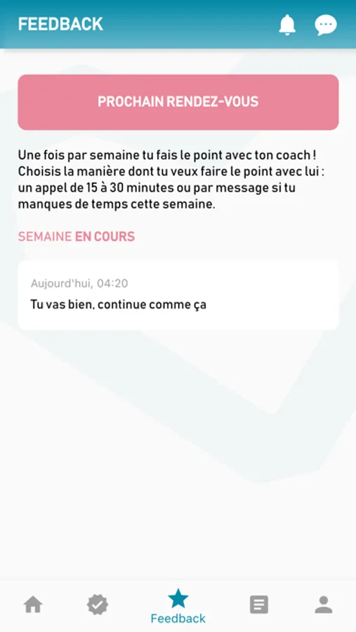 - Feedback : prenez rendez-vous avec votre coach, consultez son feedback
