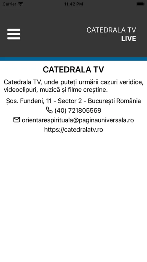 Catedrala TV, unde puteți urmării cazuri veridice, videoclipuri, muzică și filme creștine.