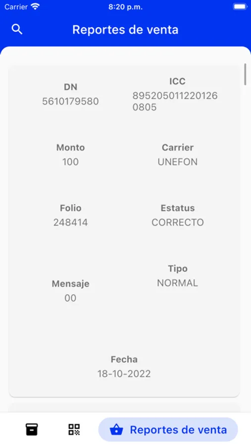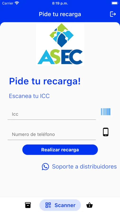 Una vez que tus líneas sean autorizadas en el sitio web, usa esta aplicación para solicitar tus recargas de activación. Solo tienes que escanear el código de barras de tu tarjeta sim, y la recarga se realizará automáticamente en segundos.