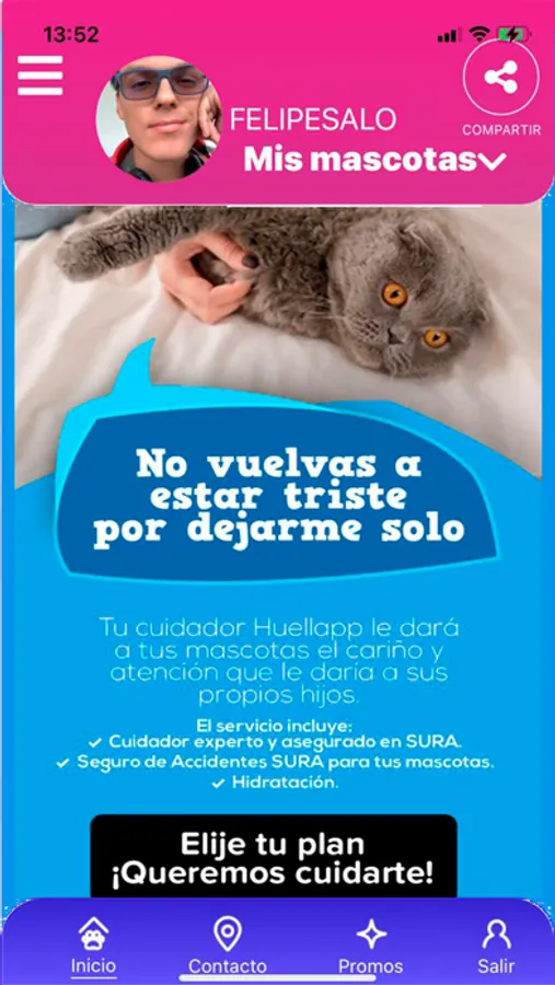Huellapp es una aplicación para amantes, animalistas, tenedores de mascotas y proveedores de servicios. Donde podrán encontrar funciones pensadas en el bienestar de los animales de compañía. inicialmente prestará servicios en las siguientes ciudades capitales Bogotá, Cali, Medellín, Barranquilla, Cartagena, Santa Marta, Bucaramanga, Ibagué, Pereira, Manizales, Armenia, Tunja, Villavicencio, Pasto y sus áreas metropolitanas de las mismas. También cuenta con una red colaborativa de apoyo con las funciones encuéntrame y adóptame. La descarga de la aplicación es gratuita por tiempo limitado. Paseadores y cuidadores de mascotas podrán disponer de nuestra aplicación también para generar ingresos registrándose desde nuestra pagina web www.huellapp.co
