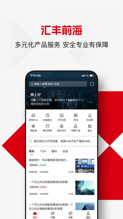 汇丰前海APP是集行情、交易、资讯为一体的专业投资平台。