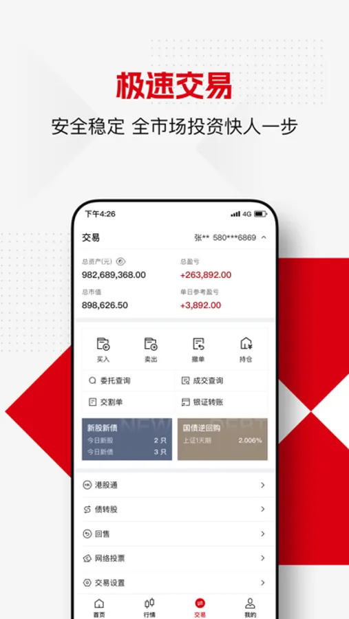 快捷交易:支持闪电下单,一键打新、投资品种丰富;