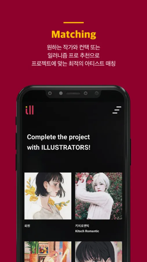원하는 작가와 컨택 또는 일러니즘 프로 추천으로 프로젝트에 맞는 최적의 아티스트를 매칭해 드립니다.