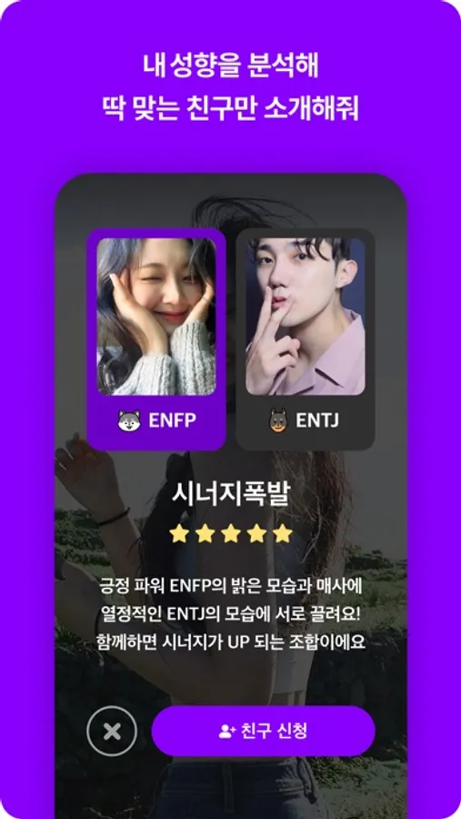 나의 성향 문답을 기반으로 궁합 딱 맞는 친구만 소개해 드려요