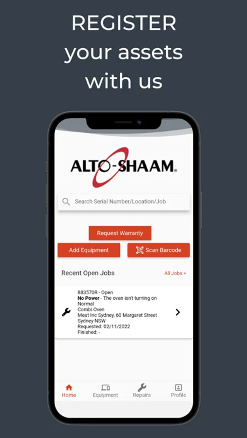 • Manage all your registered equipment – view and manage all your purchased Alto Shaam equipment from one place, across all your locations.