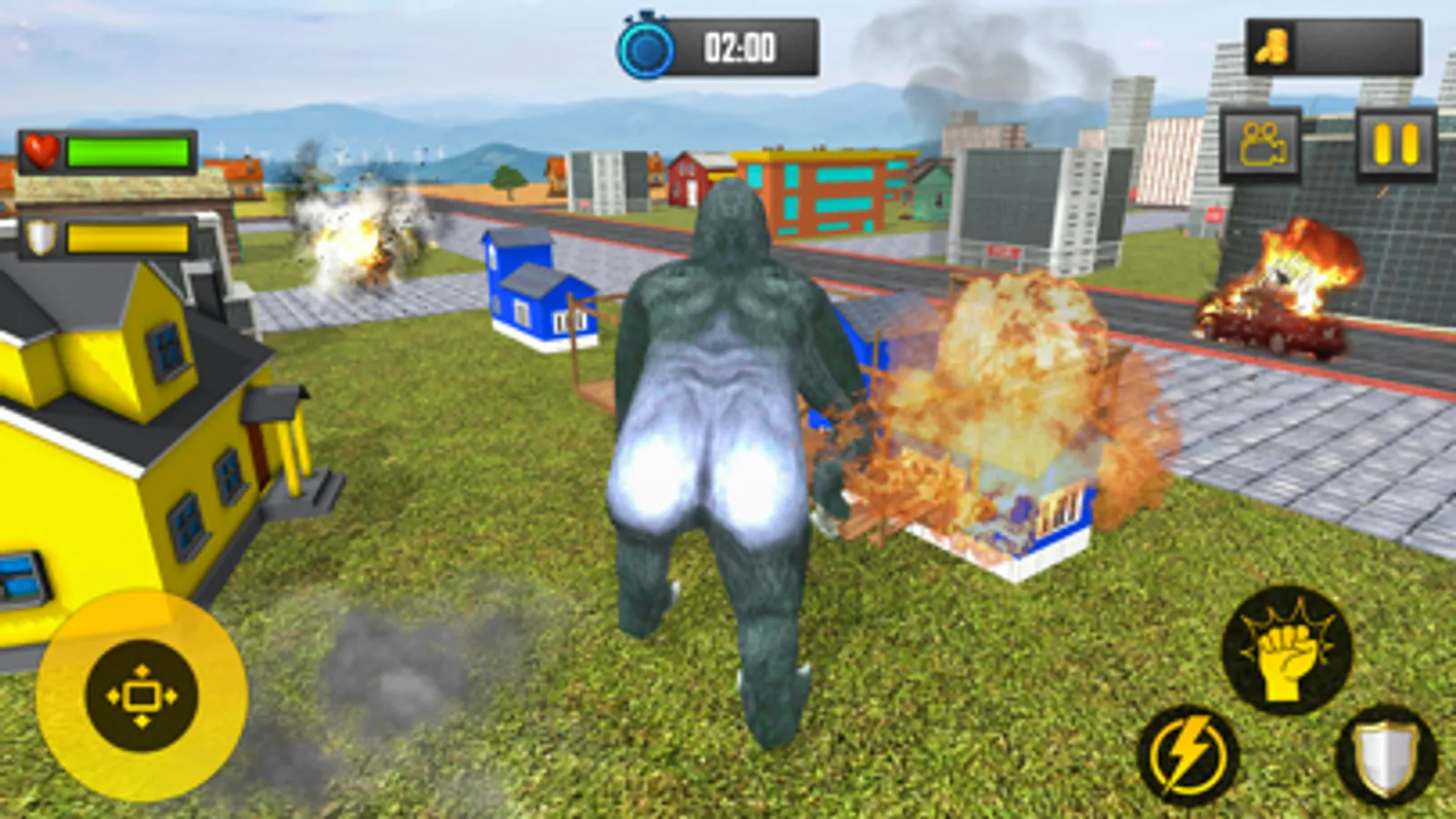 In this gorilla robot, dinosaur attack game people should beware of the wild animal attack from this ultimate white gorilla in this angry gorilla game. In these gorilla fighting games you can destroy the city. Control your angry monster gorilla or wild Kong and start destruction around the town in city angry gorilla city rampage games