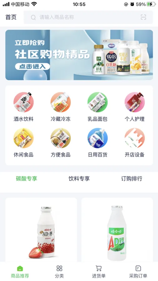 2、商品丰富的线上商城,个性推荐、商品分类;让订货变得更加智能简单;
