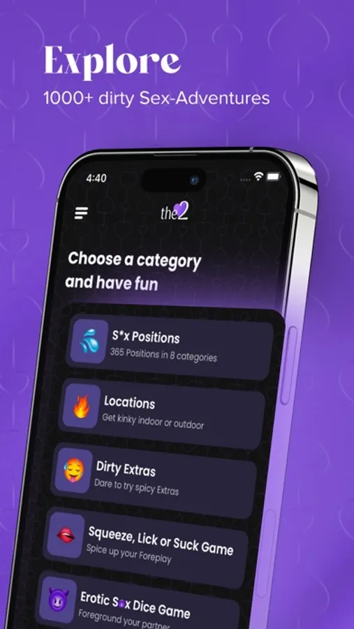 Bring back the passion into your relationship and discover together with your partner hundreds of exciting couple challenges in 5 different categories. How many of them can you do?
