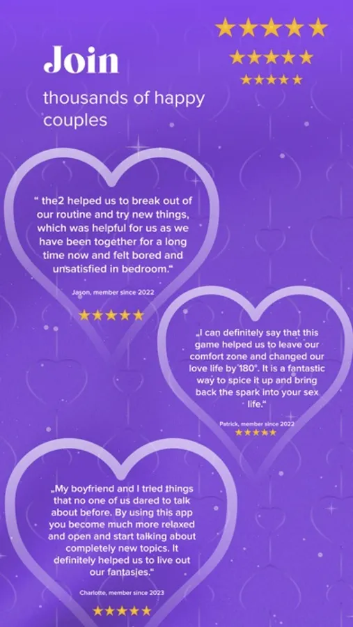 „the2 helped us to break out of our routine and try new things, which was helpful for us as we have been together for a long time now and felt bored and unsatisfied in bedroom.“