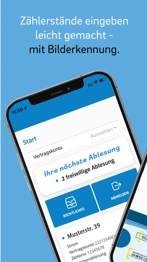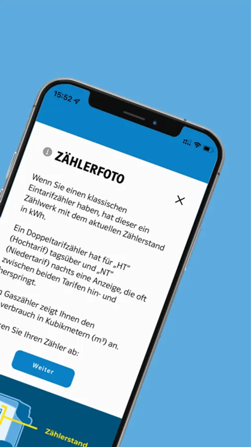 Mit der App können Sie den erforderlichen Zählerstand erfassen. Anschließend erhalten in wenigen Minuten per E-Mail eine Bestätigung.