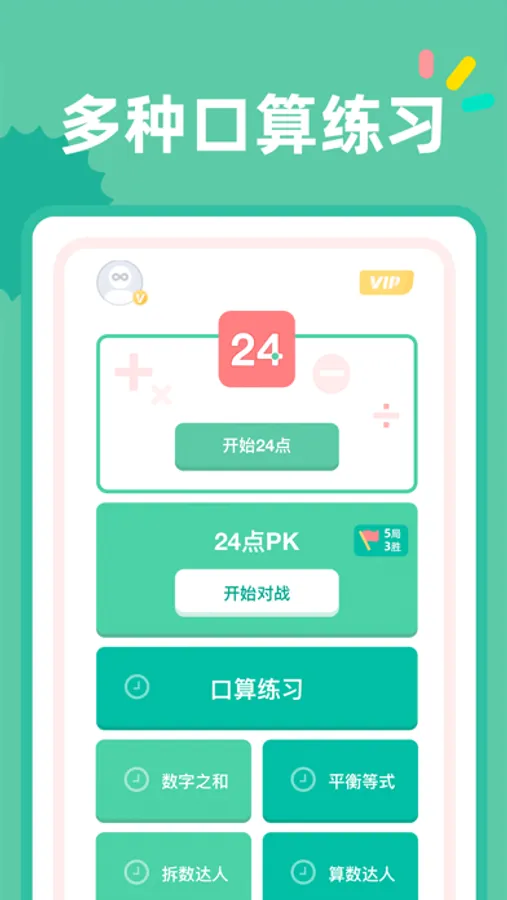 【24点PK】5局3胜制,可以和你的朋友一起挑战,争做24点小达人;