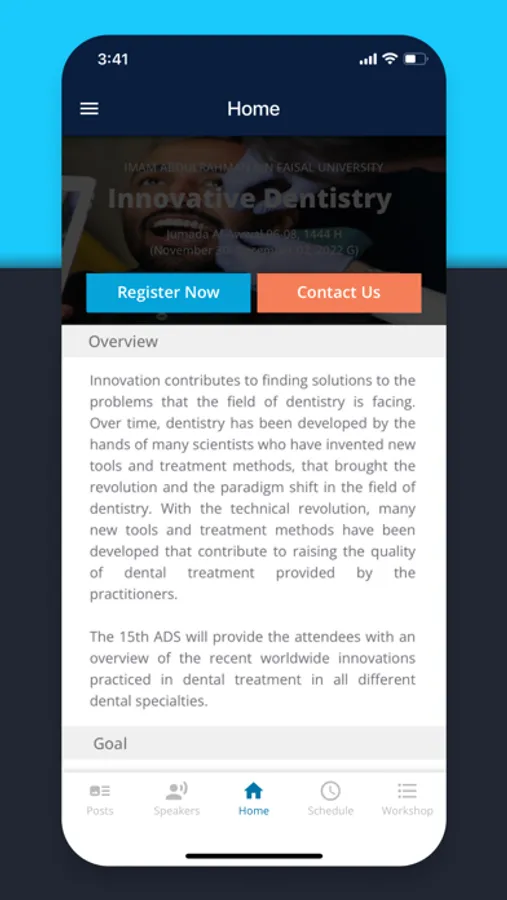 The app is developed to manage the 15th Annual Dental Symposium that is hosted by College of Dentistry at Imam Abdulrahman Bin Faisal University.