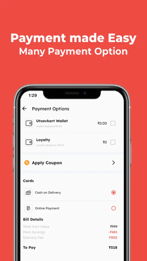 Using Utsav Kart is as easy as one, two and three. First and foremost, download the “Company Name” or logon to the “Company Name” website where you can browse through various products or search for a particular item. An option to add products to the shopping cart is always visible on screen. Once you are done, you will be directed to the address and delivery screen which contains fields to input an address. Here, you will also be able to choose a suitable time for delivery. Soon after, you will be redirected to the payment gateway. Choose your method of payment, cash, card or e-wallets and then, simply, wait for your doorbell to ring!