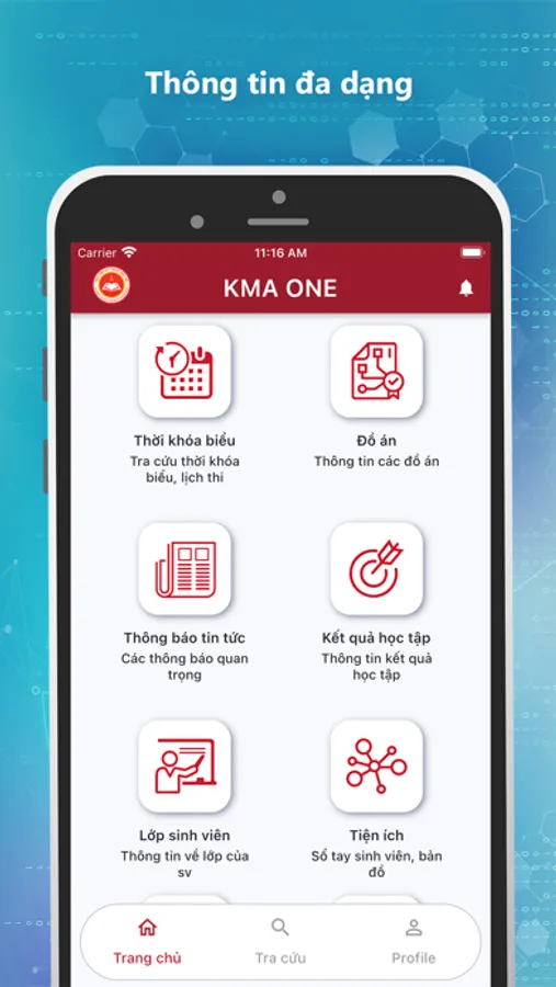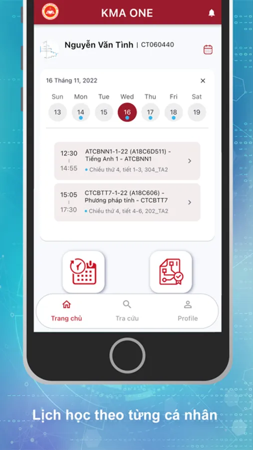 The KMA ONE application provides functions for both students, faculty, and school staff. With this application, you will have the ability to access and exploit school information quickly, easily and efficiently: