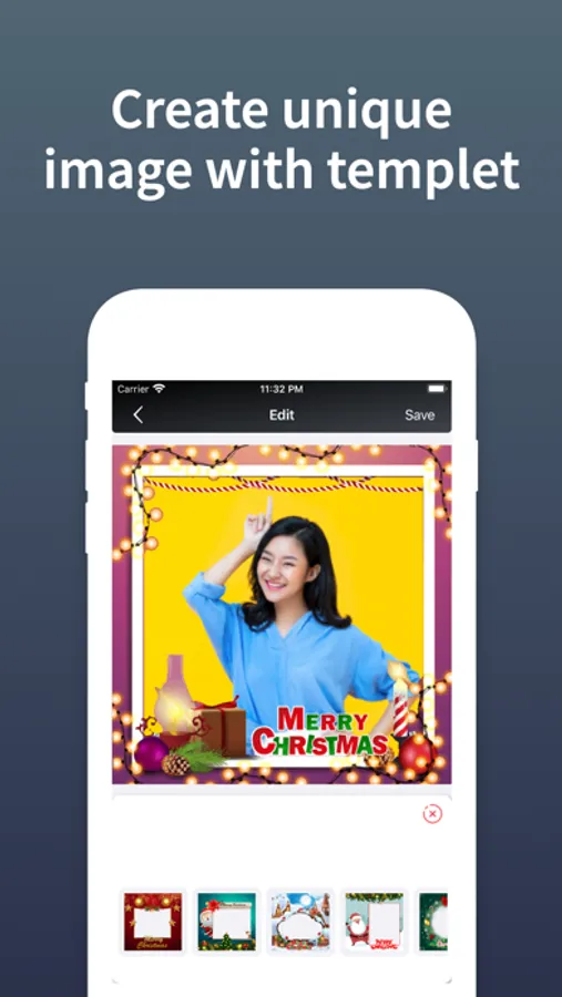 Get collection of charming Merry Christmas photo frames and templet with 'Christmas Photo Editor'! You will definitely find an templet that suits your needs among 35+ beautifully designed templates. Make personalised Christmas cards easily.