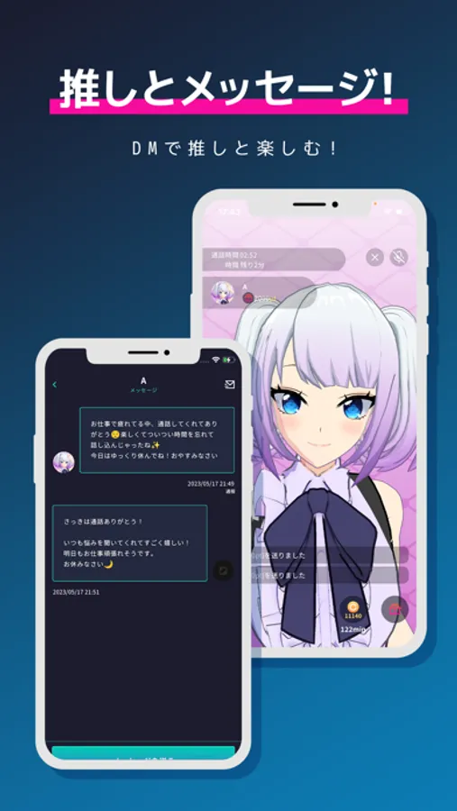 BackStageでは、アバターキャストと1on1で会話を楽しむことが出来るアプリです!
