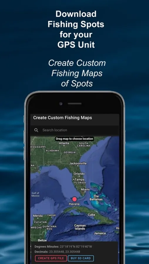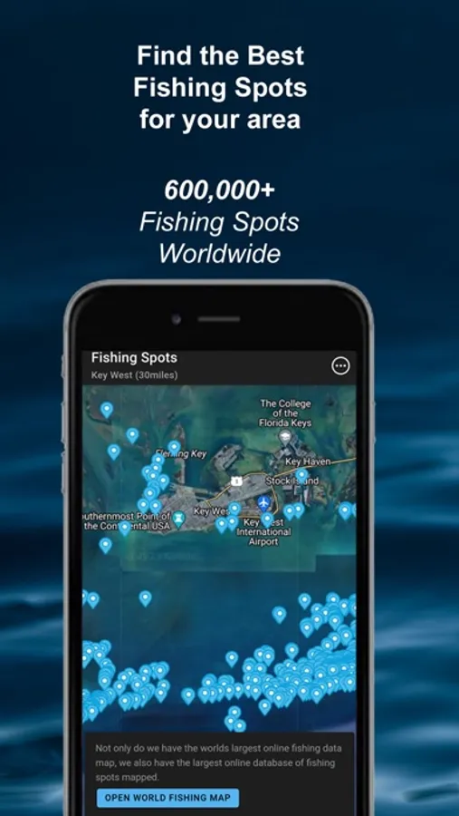 We have the world's largest database of fishing spots with over 1,200,000 spots worldwide. We have added the ability to download fishing spots for your mobile device, or your GPS unit on your boat. We provide the files that allow you to import them directly into your navigation unit. We also allow you to create your own custom maps of fishing spots with filters for distance, structure, and more. We have 100 mile radius saltwater maps and 30 mile lake maps of fishing spots that are updated bi-monthly and available for download for mobile and many GPS units.