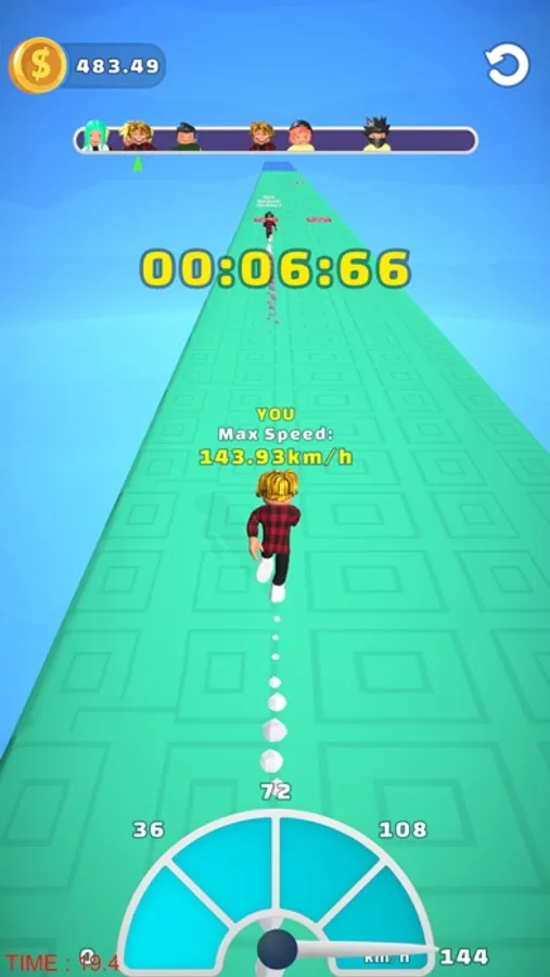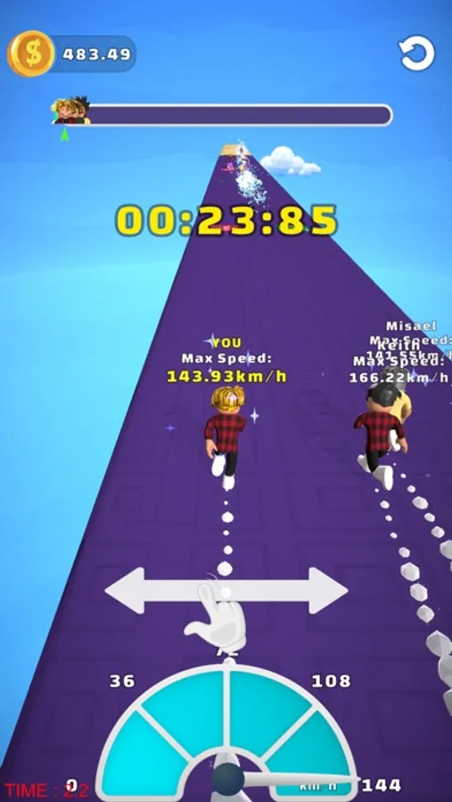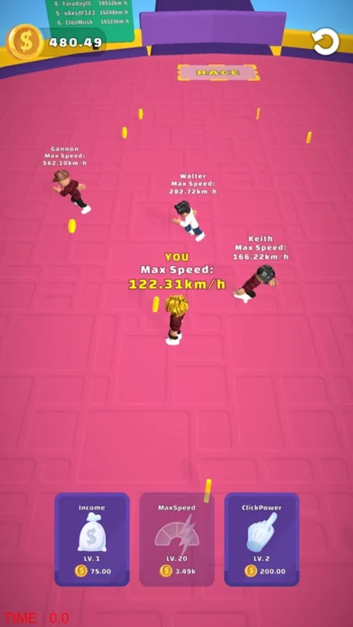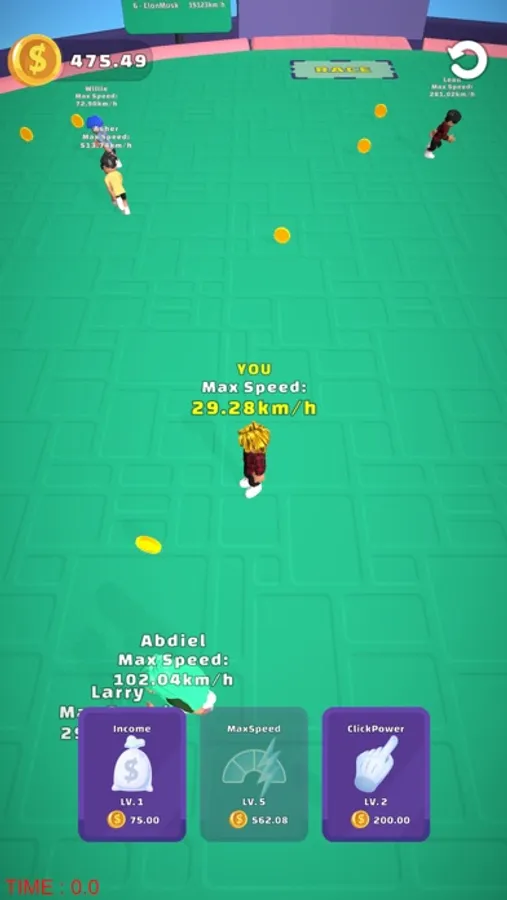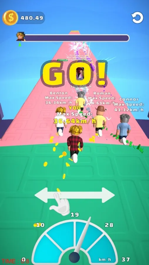 Develop your character, participate in races. The more you run, the more money you earn. Remember, the faster you click before starting the race, the faster you will accelerate.
