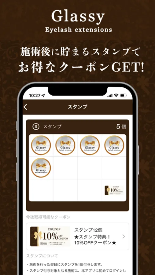 ご来店スタンプをためるとお得なクーポンが発行されます(ご利用条件がある場合がございます)