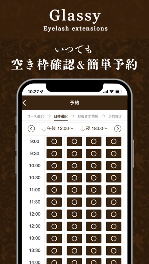 いつでもお手元のスマートフォンからご希望のお時間帯のチェック・ご予約が可能です。