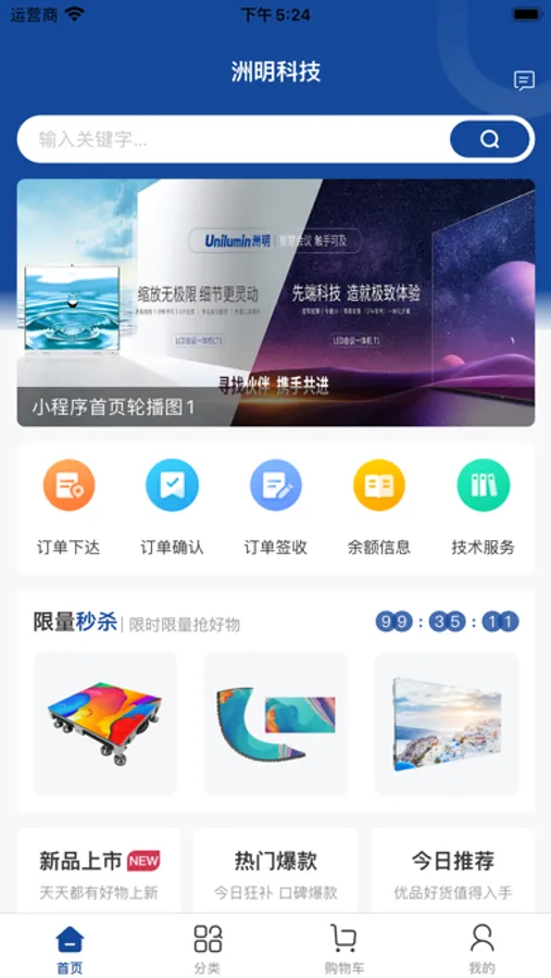 洲明b2b系统,产品序列展示、经销商采购、行业案例。