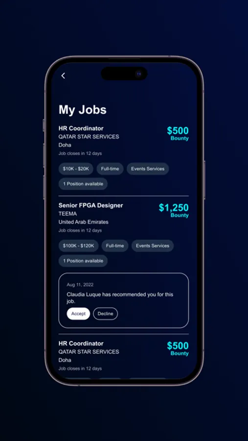 Bounty Hunter is the future of social recruitment. Refer your trusted network and earn your share of the Bounties on offer. Free to sign up, free to use, convert your network and connections into cash whilst helping your friends find the perfect job