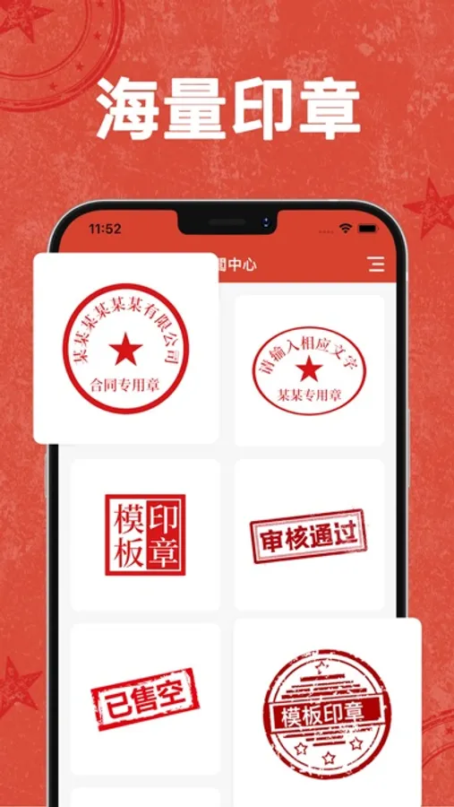 你手機上的印章設計工具,多種範本方便你快速製作想要的印章內含各種印章範本,各種内容隨意調整,輕鬆定制專屬您的印章!