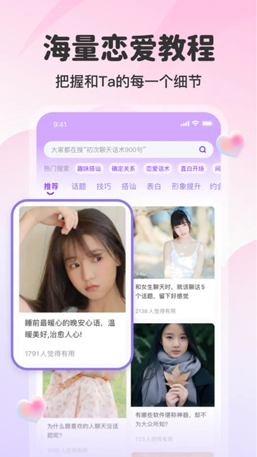 1、丰富的恋爱干货,海量的精选恋爱技巧、恋爱教程