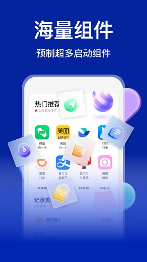 预制超多热门应用/功能的启动组件,常用功能便捷设置快速直达