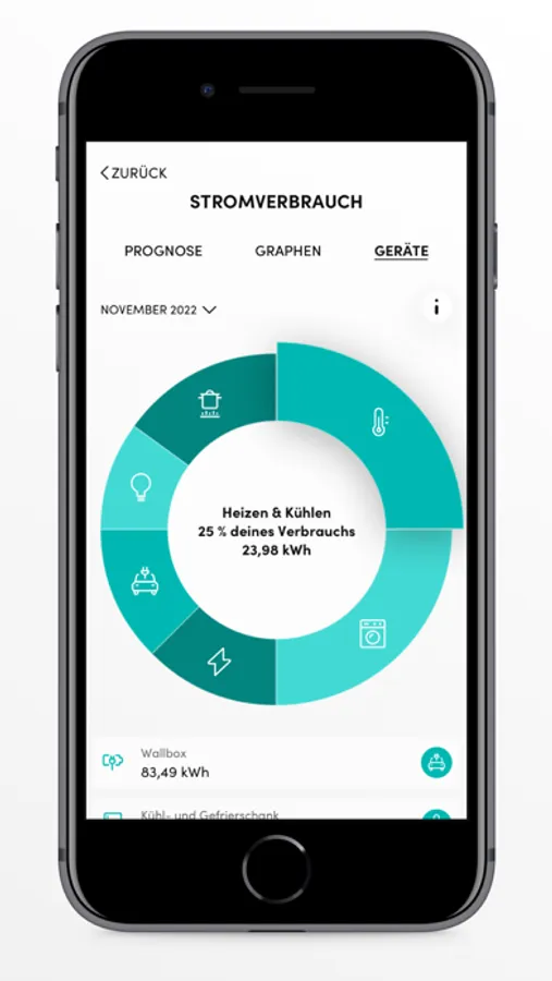 Du möchtest Energie sparen und weißt nicht wo du anfangen sollst? KYKEN ist Dein Energiekompass! Lass Dir neben Deinen Zählerständen auch den Verbrauch deiner Gerätegruppen, wie „Heizen & Kühlen“ anzeigen und untersuche, wie viel Strom Dein Kühlschrank verbraucht. Finde so ganz einfach Einsparpotenziale und spare bares Geld.