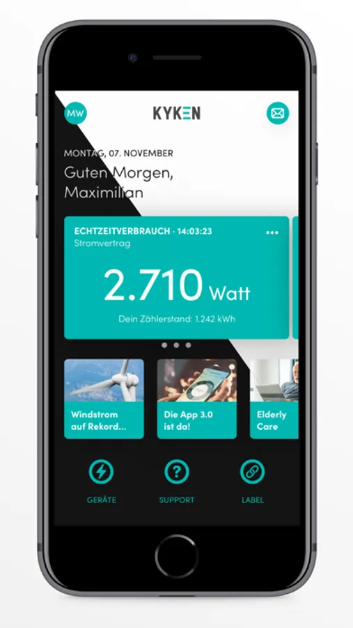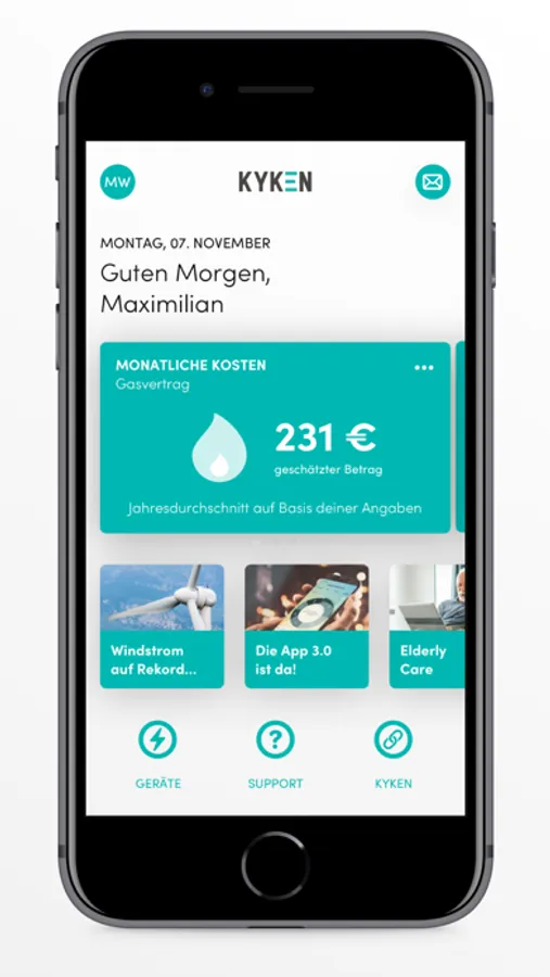 Du weißt nicht wie viel Du aktuell verbrauchst und ob du am Ende des Jahres Nachzahlungen zu befürchten hast? Mit KYKEN siehst du nicht nur Deinen historischen und aktuellen Verbrauch, sondern bekommst hilfreiche Hinweise - damit Du bei Bedarf frühzeitig gegensteuern kannst.