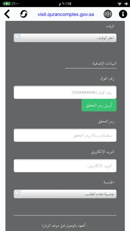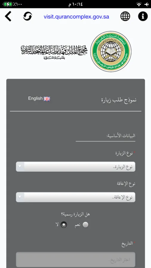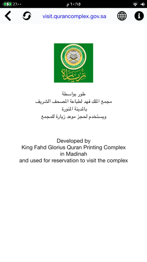 An App from King Fahd Glorious Quran Printing Complex in the Holy City of Madinah, Used to Reserve a Visit appointment
