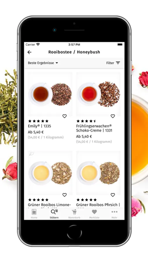 TeeGschwendner - entdecken Sie die weite Welt des Tees! Mithilfe unserer App finden sie unter 350 losen Premiumtees garantiert Ihren persönlichen Lieblingstee. Ob Schwarzer, Grüner, Weißer oder Oolong Tee, Früchte- oder Bio-Kräutermischungen oder Rooibos und Honeybush - unser breites Tee-Sortiment bietet alles, was das Teeherz begehrt. Seit über 40 Jahren steht TeeGschwendner für beste Qualität, höchste Sicherheit und exzellenten Teegenuss. Aus Liebe zum Tee sind wir ständig auf der Suche nach den besten Tees der Welt. Tee mit allen Sinnen genießen - dieses Erlebnis möchten wir mit Ihnen teilen. Ausgewählte Gartentees, Spitzen-Grüntees, kreative Teemischungen, wohltuende Bio-Kräutertees, fruchtige, exotische oder auch cremige Früchtetees, Rooibostees jeder Geschmacksrichtung, ayurvedische Tees und auch Tee im MasterBag Teebeutel - bei uns kommt nur das beste in die Tasse. Wie beim Wein, so gibt es auch beim Tee himmelweite Unterschiede zwischen günstiger Beutelware und liebevoll per Hand verarbeiteten Premiumtees. Unsere Mission ist, Sie von unseren hervorragenden Qualitäten, ressourcenschonenden Verpackungen, begeisternder Geschmacksvielfalt zu überzeugen und Sie mit unserer Teeleidenschaft anzustecken. Dafür arbeiten wir in der Meckenheimer Systemzentrale und alle unsere Partner und Mitarbeiter in Ihren Fachgeschäften vor Ort mit Herz und Hand!