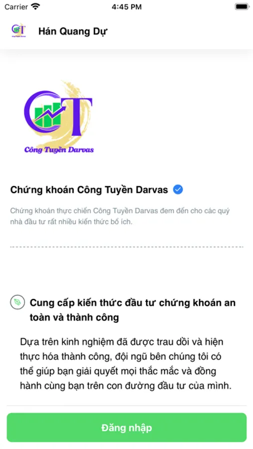 - Đào tạo chứng khoán thực chiến: Với mong muốn truyền tải những kiến thức và kinh nghiệm đã tích lũy trong nhiều năm, Công Tuyền Darvas mở ra con đường đầu tư chứng khoán cho nhà đầu tư và tất cả đều thành công tốt đẹp trong việc thực hiện.