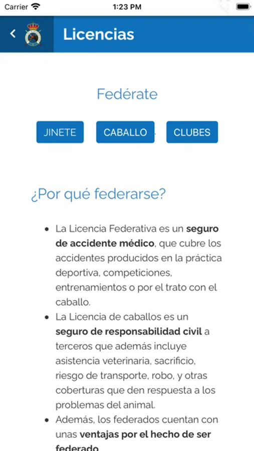 Aplicación destinada a mostrar información relativa a la Federación Hípica del Principado de Asturias.
