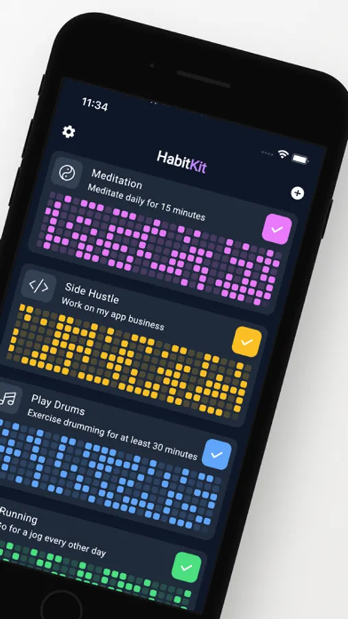 HabitKit is the perfect app for anyone looking to form new habits or break old ones. With HabitKit, you can track your progress with beautiful tile-based grid charts. Whether you're trying to quit smoking, eat healthier, or exercise more, HabitKit can help you achieve your goals. You can customize your dashboard by adjusting colors, icons and descriptions. Draw motivation from growing the amount of colored tiles on your habit dashboard.