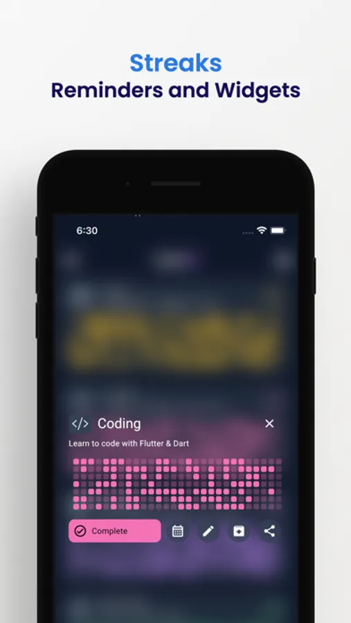 All your habits are displayed on your dashboard represented by a cool looking grid chart. Every filled out square show a day where you kept up with your habit.