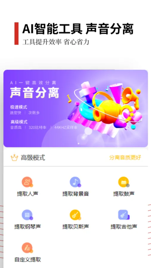 声音分离-人声伴奏提取是一款支持消除人声、人声伴奏分离等功能的音频工具,极大提高效率;