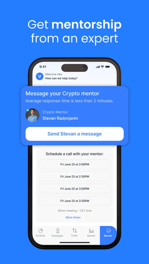 We are there to support you on your crypto journey! The Veli app contains everything you need to get started with crypto investing. However, sometimes it’s simply more convenient to speak to an actual person. That’s why we have crypto industry experts which are ready to answer any questions you may have.