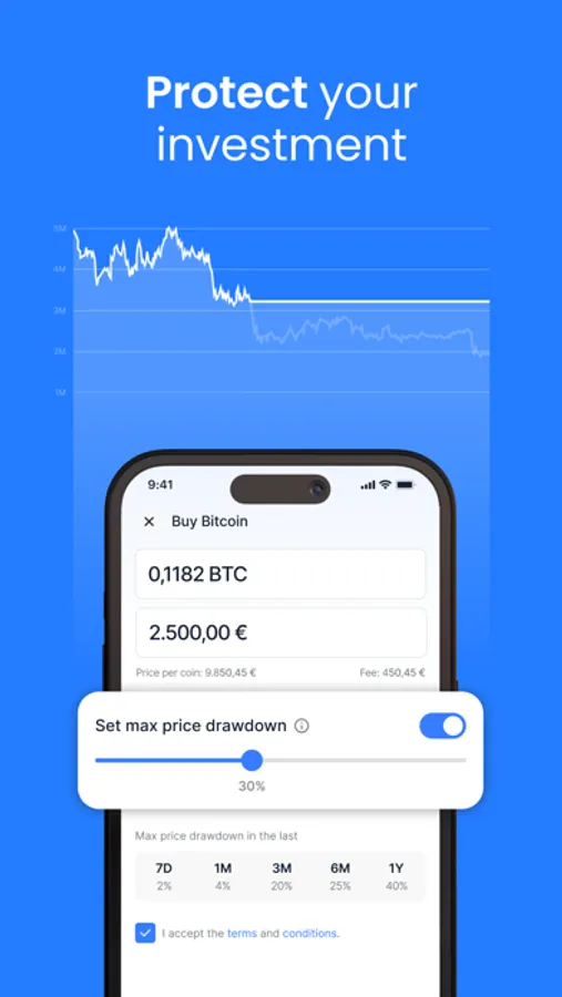 Protecting your investment from price drops has never been easier. Check how much the price dropped in the past and use a simple slider to set downside protection. Automatically, 24/7, without the need for you to be online.