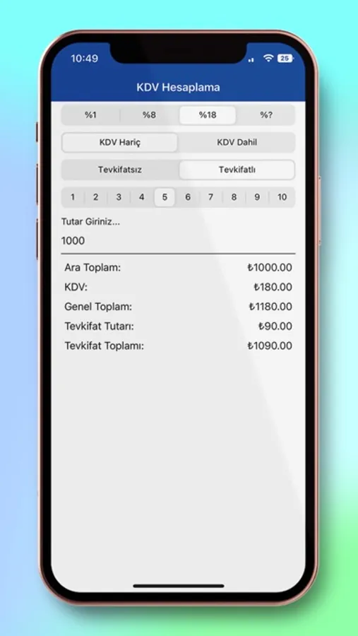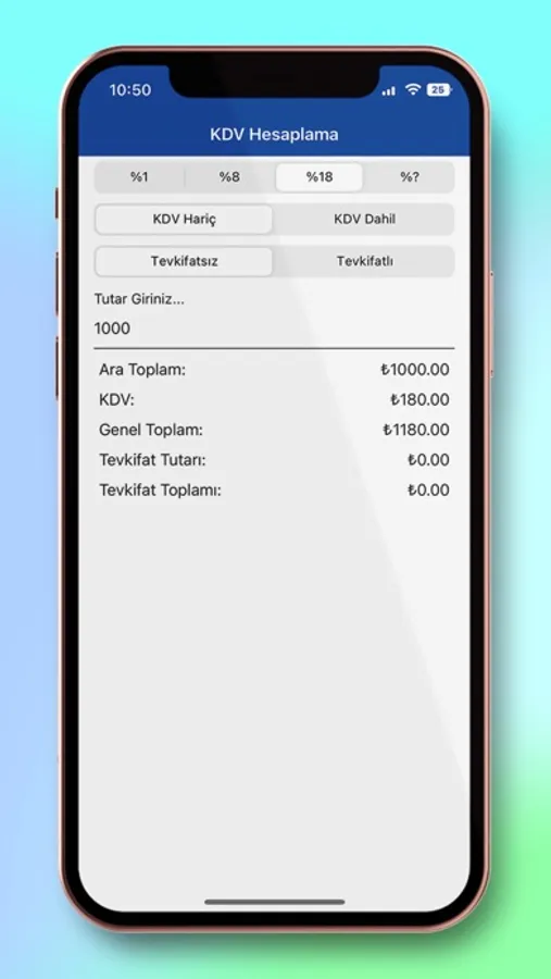 KDV Tevkifatı hesaplamak isteyenler ekranı kaydırarak kolayca hesaplama yapabilirler. Tevkifat oranına dokunmak yeterlidir.