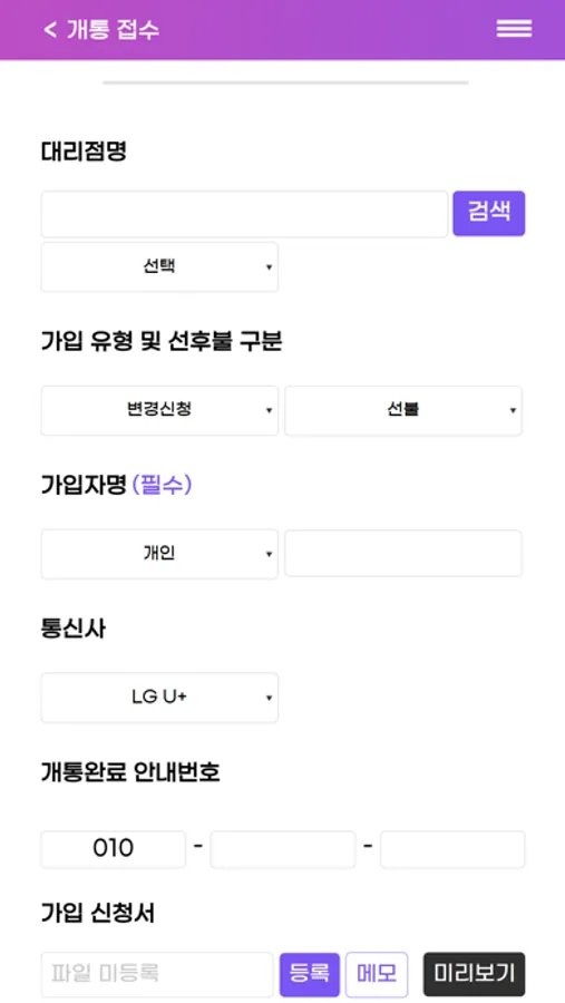 - 대리점(판매점) 선불요금제 간편개통신청 및 내역 확인