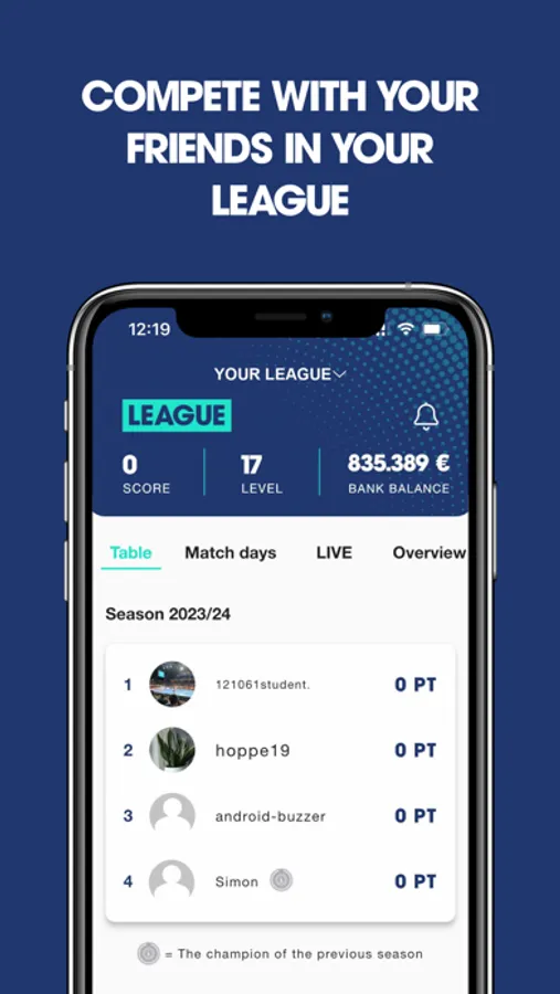 In START7 your team competes against the teams of the opposing managers in your league. 12 managers can create a league together and compete there in direct comparison. Exchange ideas with your friends and compete to see who gets the most points for their team's performance.