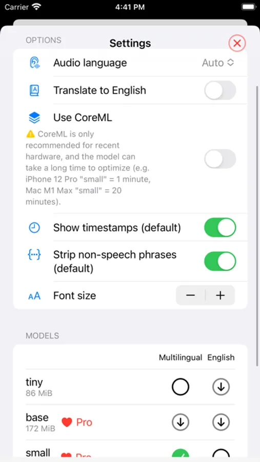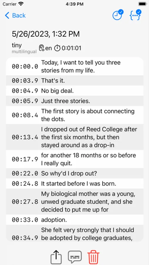 Hello Transcribe is a private and secure speech to text transcriber that uses OpenAI Whisper and Whisper.cpp.