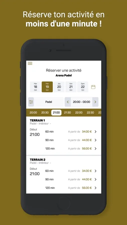 Fini la corvée de réservation ! Avec l'application tu n'as plus qu'à accéder aux créneaux disponibles et à en choisir un. Le club recevra alors automatiquement ta réservation.