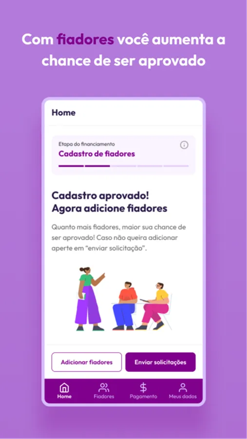 1º Passo: Preencha o formulário de cadastro no app e descubra se seu crédito de financiamento está pré-aprovado.