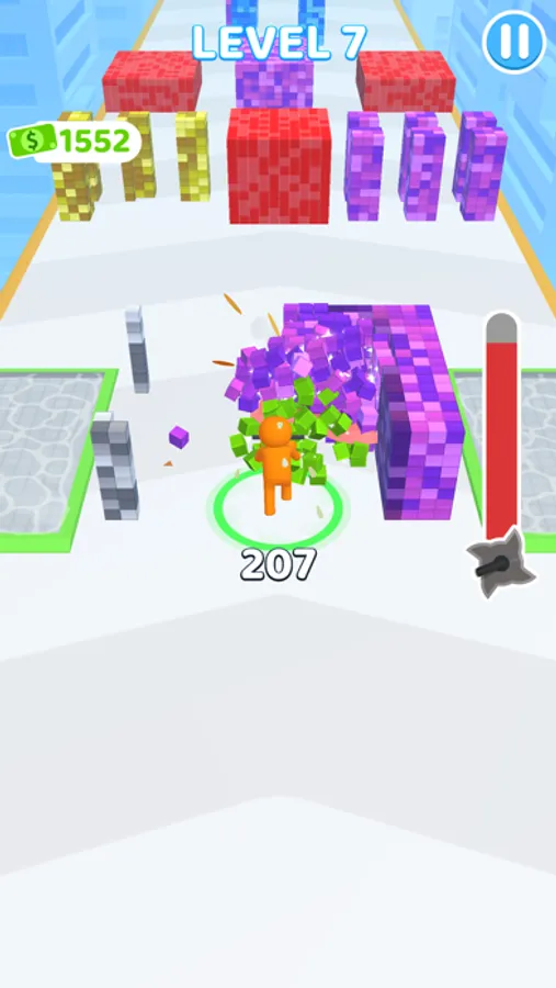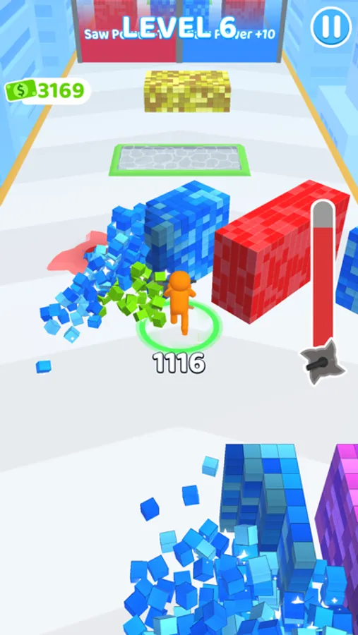 You have a powerful saw and there are many pixels to demolish. And guess what? Demolishing them feels awesome! But be careful about your saw, it gets hot! Demolish the pixels and enhance your character!