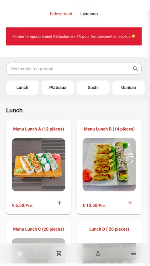 Où que vous soyez, avec l'application Sushi Fuji, vous pouvez commander sans souci parmi la vaste gamme.