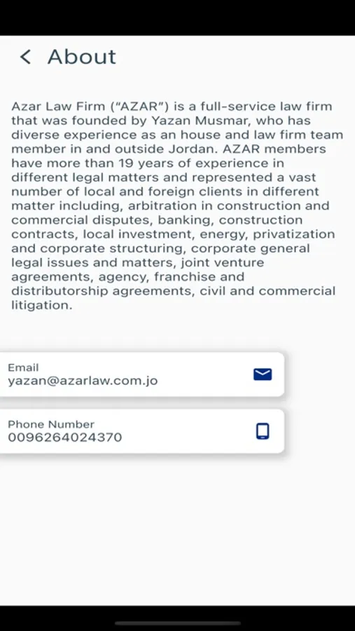 AZAR members have more than 19 years of experience in different legal matters and represented a vast number of local and foreign clients in different matter including, arbitration in construction and commercial disputes, banking, construction contracts, local investment, energy, privatization and corporate structuring, corporate general legal issues and matters, joint venture agreements, agency, franchise and distributorship agreements, civil and commercial litigation.