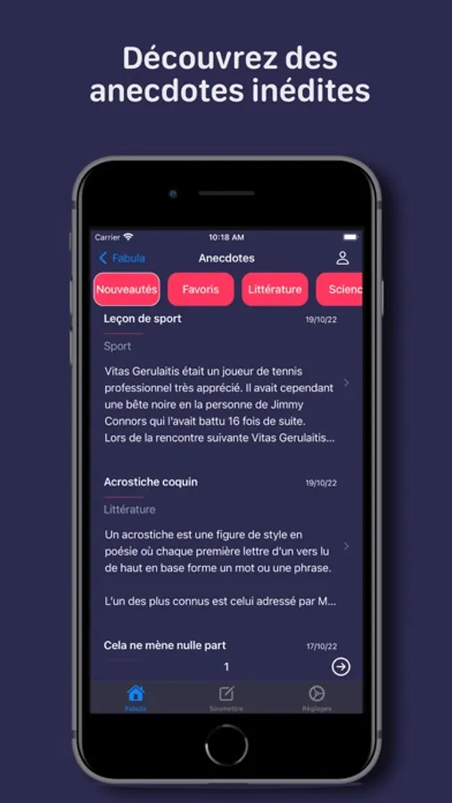 Découvrez chaque jour de nouvelles anecdotes dans des domaines variés (histoire, science, art, sport...):